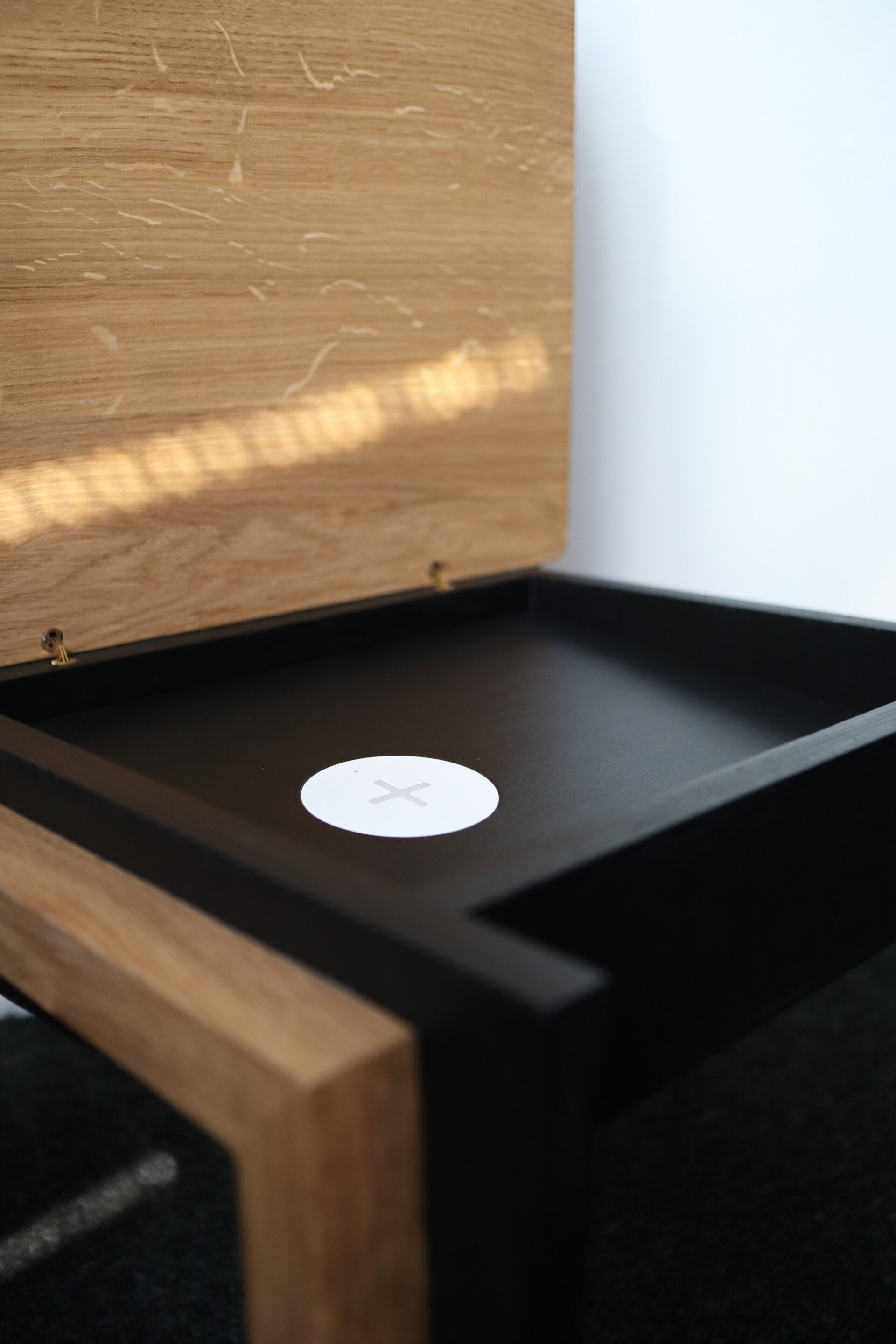 The chair's function is to allow the user to charge their phone, but only while seated. Thus encouraging the user to be more socially present to their surroundings and preventing them from gazing at their phone instead.